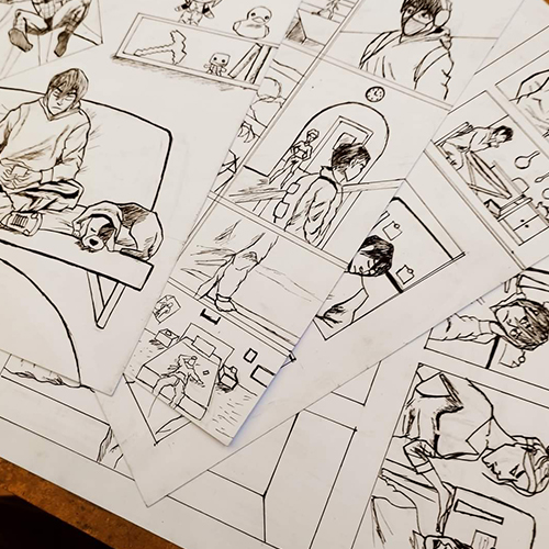 un papel utilizando los distintos tipos de tomas y viñetas para una narración gráfica adecuada enfocada a la historia,