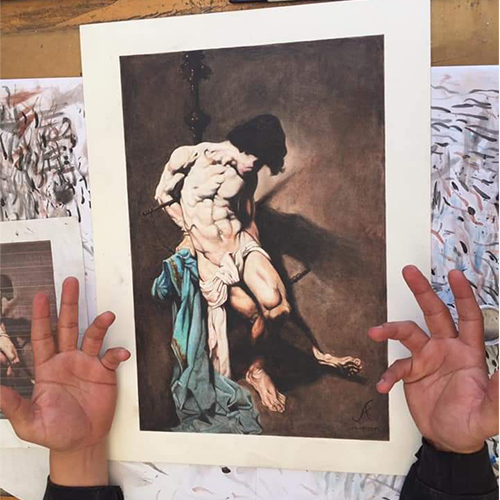 poniendo atención en los matices de las luces y sombras.
